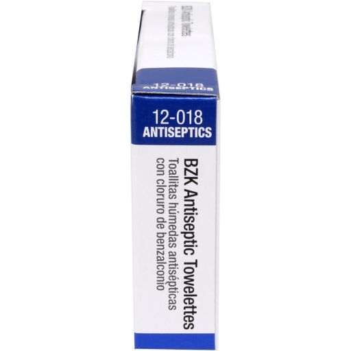 These antiseptic cleansing wipes, with the active ingredient Benzalkonium Chloride, are ideal for cleansing wounds when alcohol is inadvisable. Their single-use design eliminates the worry of cross contamination. Wipe measures 4-3/4"x7-3/4". Wipes are sterile unless package is opened or damaged. This item meets ANSI/ISEA Z308.1 color code standards for unitized first aid refill items. ANSI Information