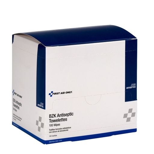 Antiseptics - FIRST AID ONLY - BZK Antiseptic Towelettes - 100 wipes