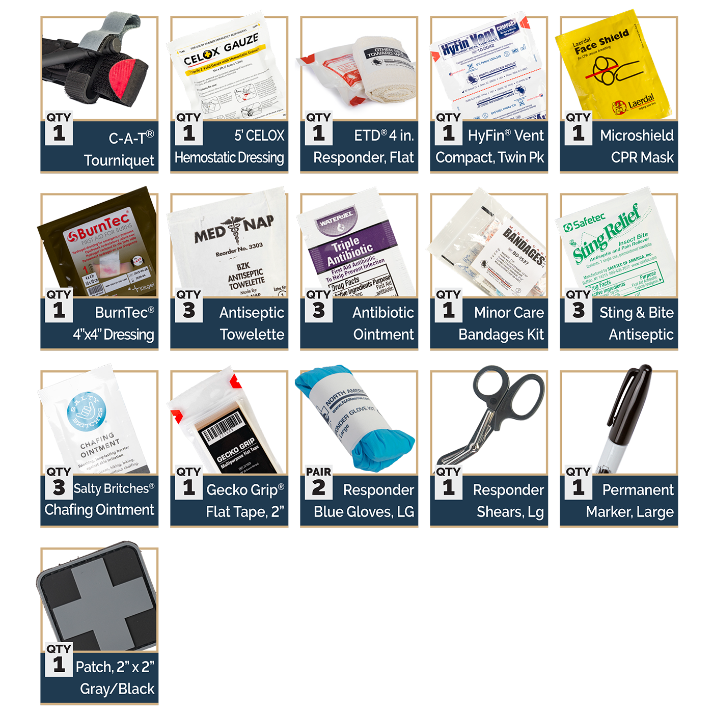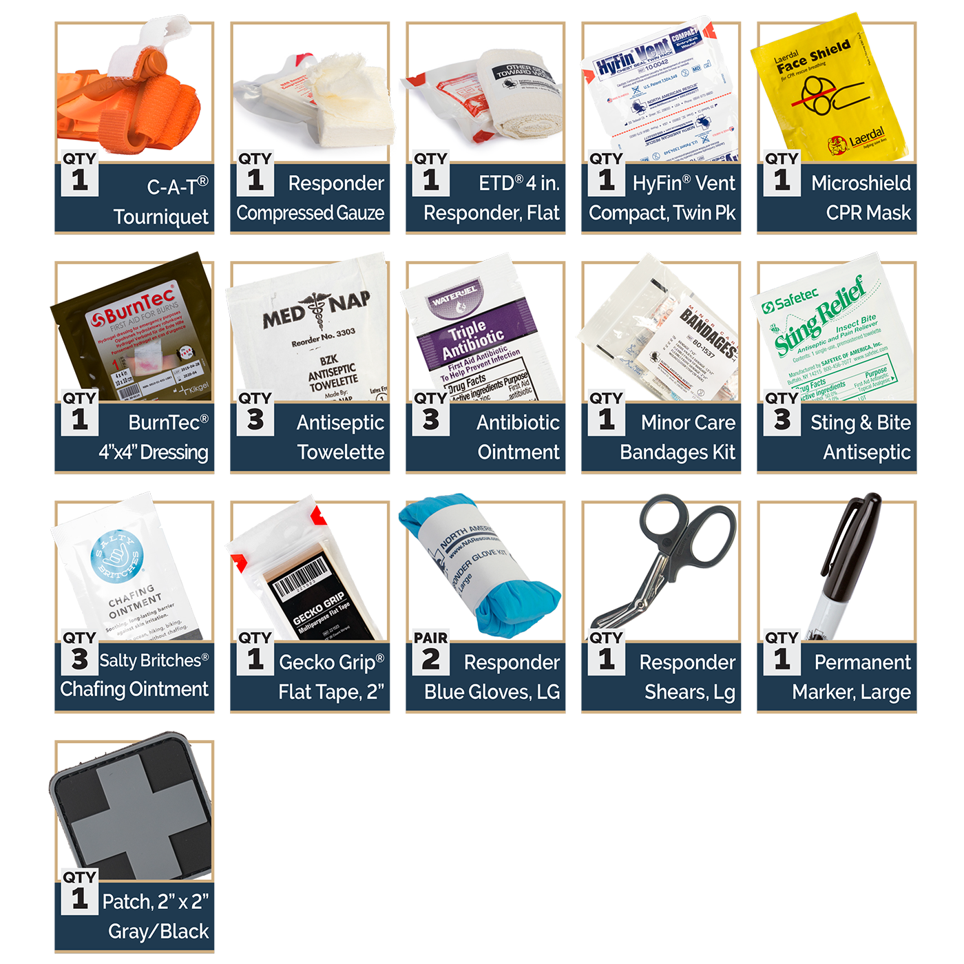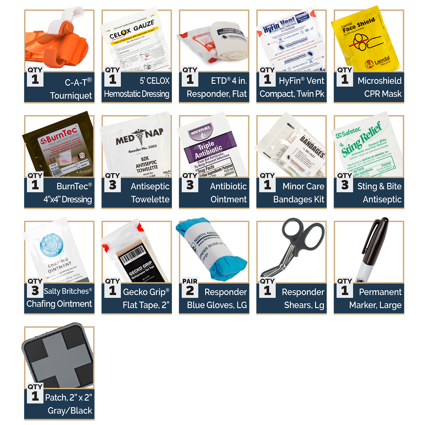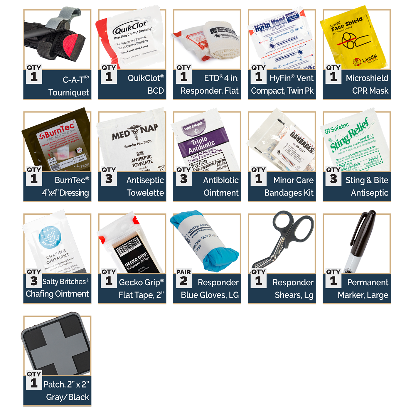 - 1 x ETD® 4 in. Flat Responder Emergency Trauma Dressing