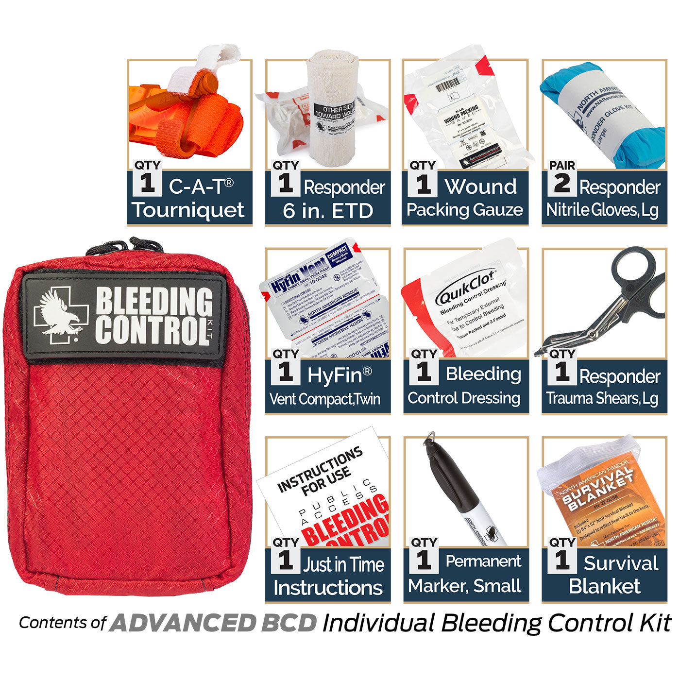 Includes all equipment found in the Intermediate PABC Station with each of the 8 Individual Bleeding Control Kits also containing the added capability of enhanced blood clotting abilities with a Hemostatic Bleeding Control Dressing for faster bleeding control.